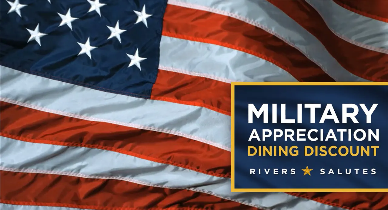 By land, by air and by sea, our service men and women sacrifice bravely to preserve our country’s freedoms. Today and every day, Rivers Casino salutes your service.