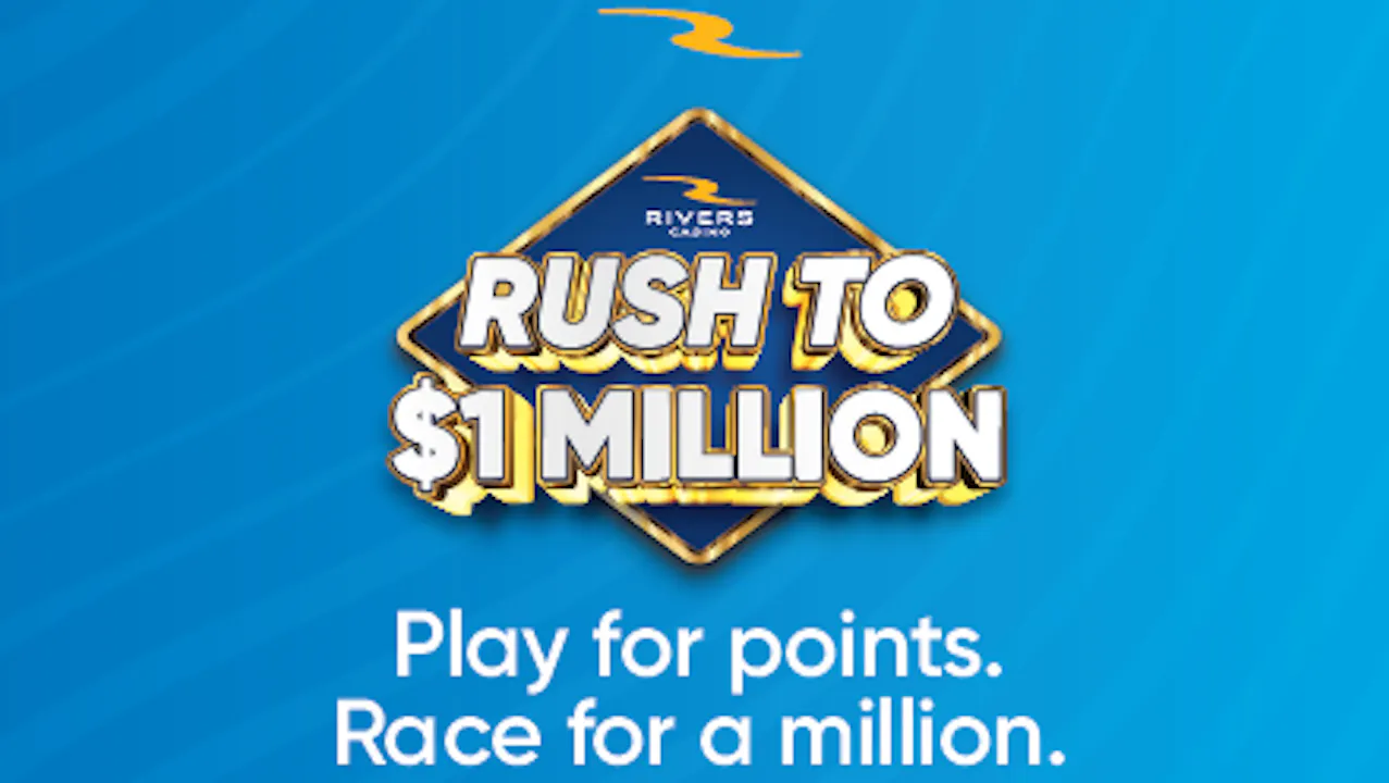Pending regulatory approval. See Rush Rewards for official promotion rules. Must be present to win. Valid only at Rivers Casino Des Plaines on dates and times specified in 2026. Must present valid government issued photo I.D. Not valid for any participant of the Illinois Gaming Board Statewide Voluntary Self-Exclusion Program.