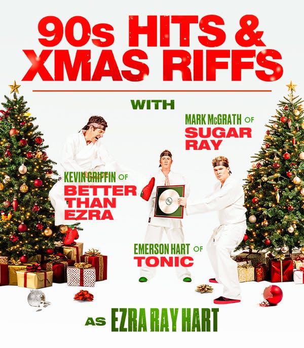 What happens when you put three of modern rock’s most-played frontmen under the same spotlight at the same time? Ezra Ray Hart is what happens! The trio unites multiplatinum icons Mark McGrath of Sugar Ray, Kevin Griffin of Better Than Ezra, and Emerson Hart of Tonic under one banner. Since emerging in 2018, the supergroup have performed to sold-out audiences on special occasions and during sought-after major festivals, packing houses coast-to-coast in the process and inciting sing-a-longs loud enough to light up the phones at MTV’s TRL all over again. Boasting 18 Top 10 singles and five #1 hits between them, the collective’s cumulative sales exceed 20 MILLION albums in the United States alone and BILLIONS of streams worldwide. McGrath not only stands out as a magnetic frontman, but also as a pop culture force of nature and household name personality. His catalog houses definitive bangers such as “Fly,” “When It’s Over,” “Every Morning,” and more. Griffin, of course, leads Better Than Ezra as its vocalist and guitarist responsible for an arsenal of anthems spanning “Good,” “A Lifetime,” “Desperately Wanting,” and more. Not to mention, he’s penned tunes for Train, Sugarland, and Howie Day in addition to founding and curating Pilgrimage Musical & Cultural Festival. Fronting multi-GRAMMY® Award-nominated Tonic, Hart’s discography includes “Open Up Your Eyes,” “You Wanted More,” and “If You Could Only See.” Now, Ezra Ray Hart put a bow on 2025 by hitting the road on the first-ever NEVER ENDING ‘90s PRESENTS: EZRA RAY HART 90s HITS & XMAS RIFFS, culling the setlist from their respective hits and the greater holiday music canon. However, the group will be spreading cheer and smiles for a long time to come with more surprises on the horizon.
