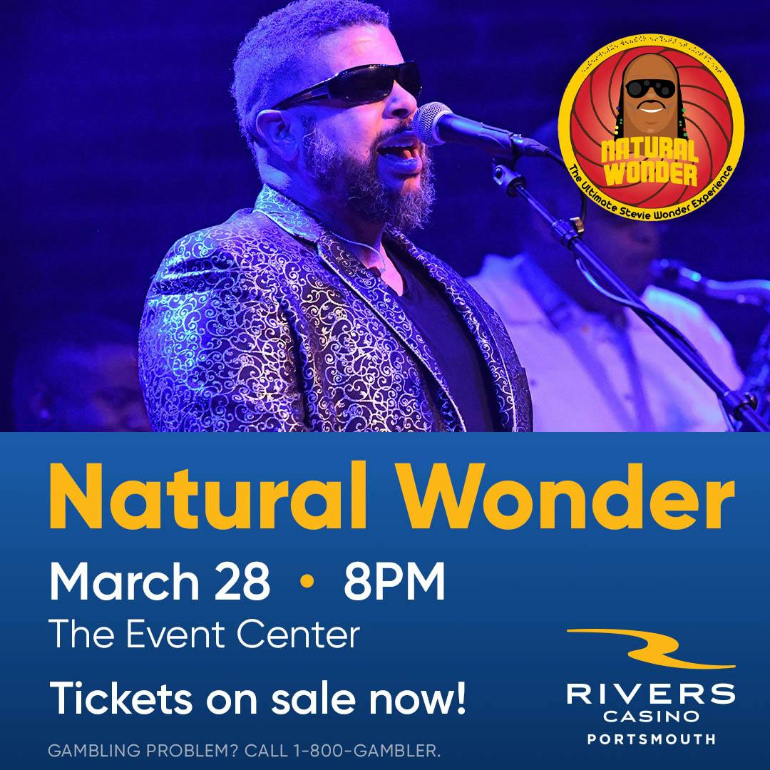 Experience the Ultimate Stevie Wonder Tribute with Natural Wonder on March 28 at 8PM in the Event Center, led by Billboard artist and producer Gabriel Bello. With over 14 years of touring nationwide, this high-energy band authentically captures the soul, sound, and musicianship of Stevie Wonder.
