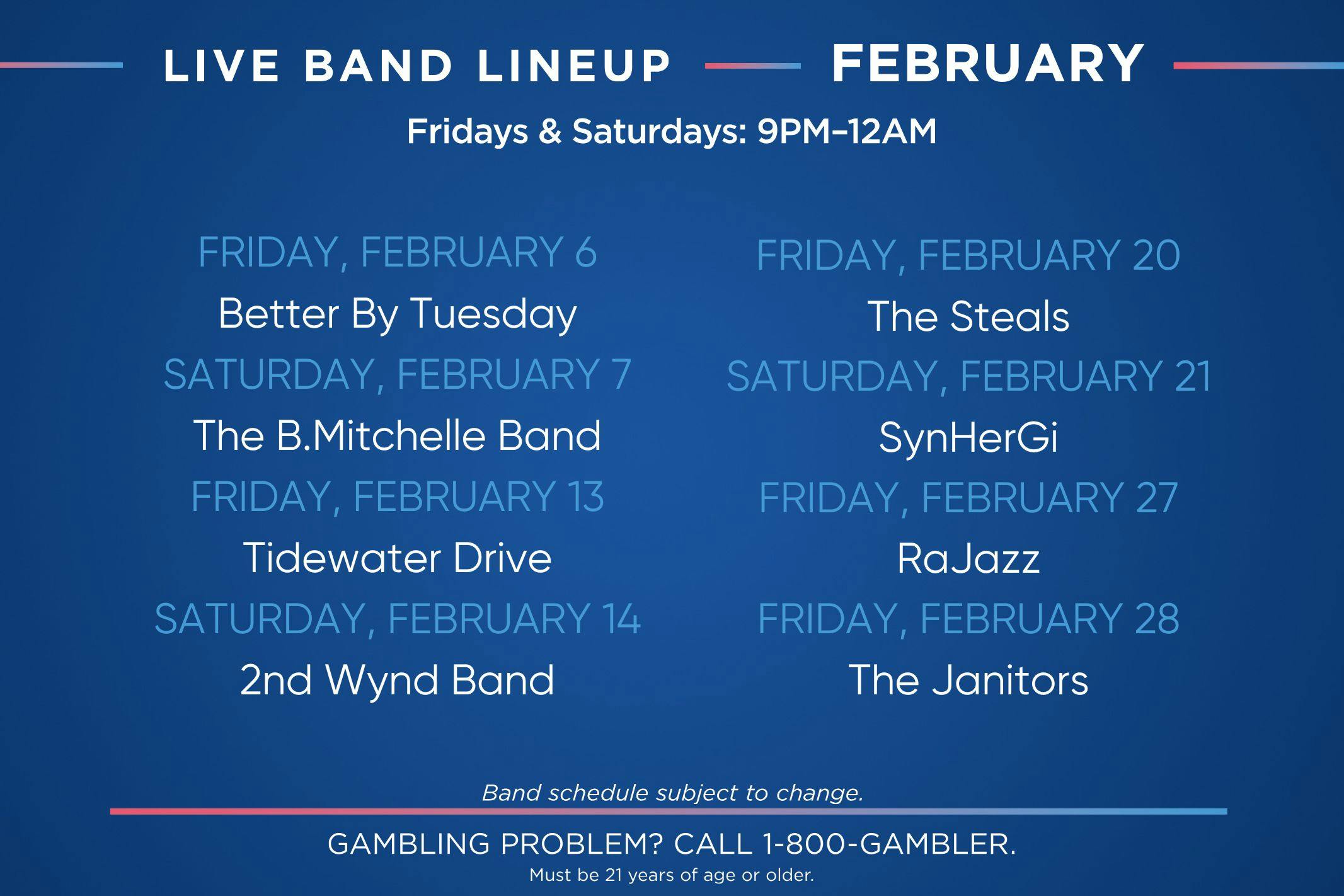 Step in off the gaming floor and kick back with your friends and your favorite beer or cocktail. Hit up our dance floor and get down to all your favorite tracks and the best local acts playing live every week. It’s always a good time around here.