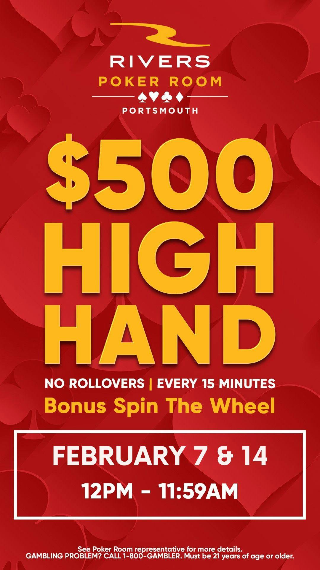 - Any player winning multiple high hands will win the high hand payout and will also spin the wheel for a chance to win up to $1,000.