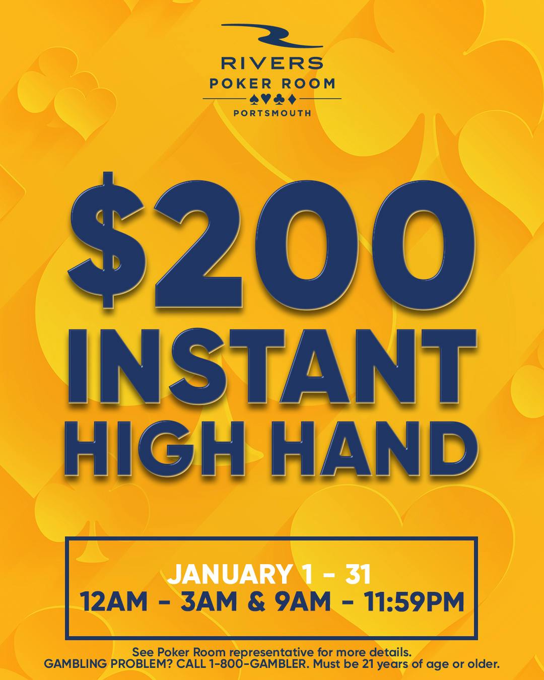 Guests must be a Rush Rewards Member to collect prize. Management reserves the right to cancel or modify this promotion at any time. Full list of rules available at the River Casino Portsmouth Poker Room.