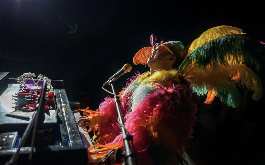 Anderson’s performance pilots a night of greatest hits, gorgeous costumes, and fierce piano playing. Many of the iconic jumpsuits, boots, and glasses are ’70s and ’80s originals worn by John at past live concerts.