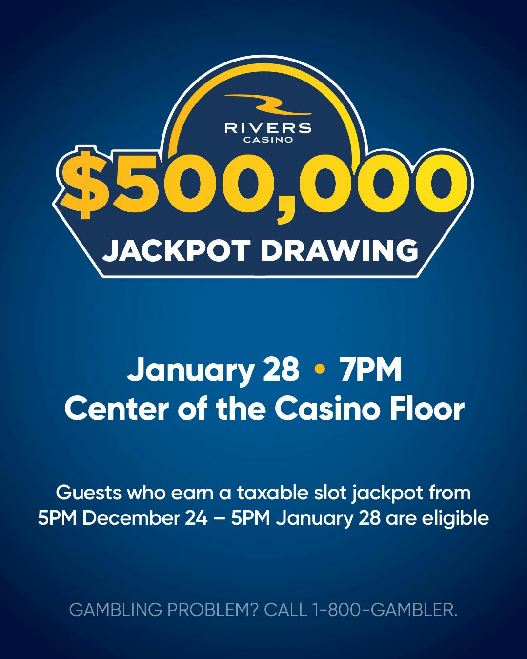 The $500,000 Jackpot Drawing will be held on Wednesday, January 28 at 7PM.