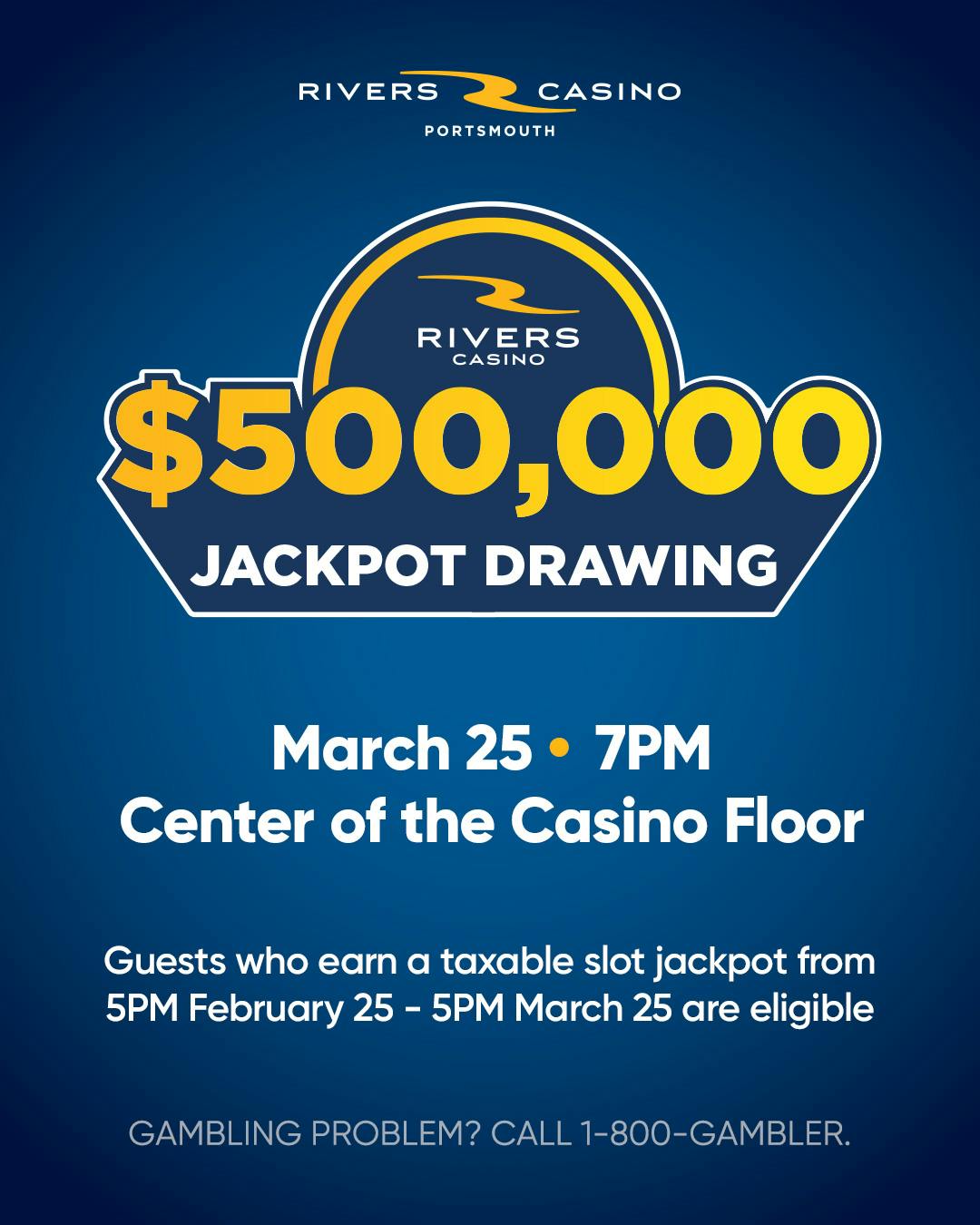 The $500,000 Jackpot Drawing will be held on Wednesday, March 25 at 7PM.