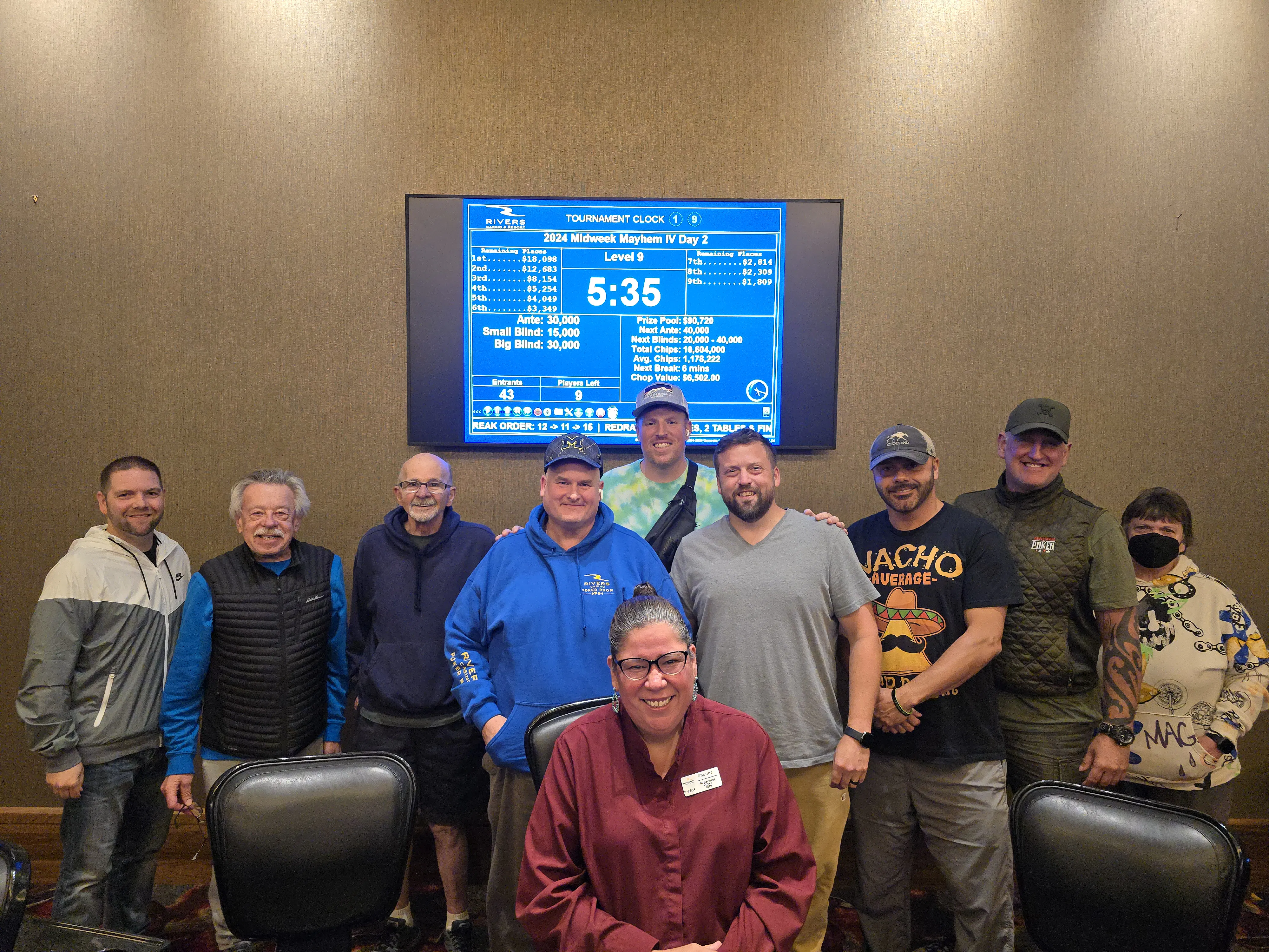 The final table is set! Only 9 players remain in the Midweek Mayhem tournament, all battling for the first place prize of $18,098. Congratulations to the final 9 and good luck at the table!